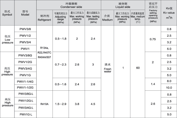 PWV1/2G型冷凝压力调节阀一般安装在冷凝器的冷却水管路上(通常安装在冷凝器的进水端),根据冷凝压力的不安化来调节冷却水的流量。当压缩机的冷凝压力升高(即冷凝压力升高)时,阀门自动开大,是较多的冷却水进入冷凝器,加快制冷剂冷凝的速度;反之,当冷凝压力下降时,阀门自动关小,使进入冷凝器的冷却水量减少,从而,使冷凝压力保持在一定的范围。